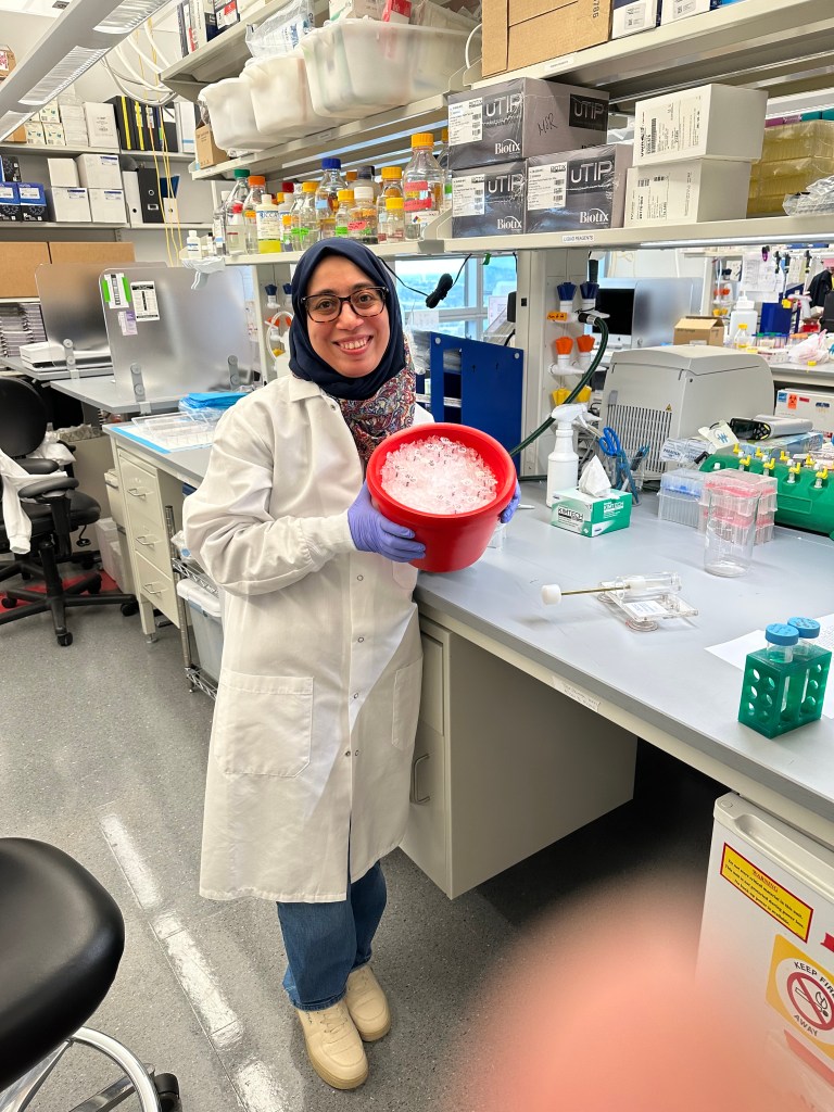 Shefaa working on an experiment in lab